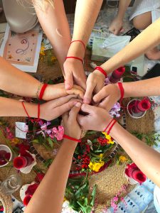 🎨 Des activités créatives : création de couronnes de fleurs, mandala sur le ventre, collier de perles