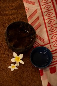 Tout au long du soin, une tisane aux plantes – cannelle et romarin – soutient la montée en chaleur du corps, favorisant l’intégration du rituel.